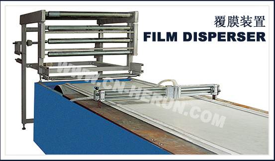3、在副输送机的过渡段与下料段之间设有在线锯断机,根据板材不同长度的要求,对固化成型后输送线上的板材进行在线锯断。